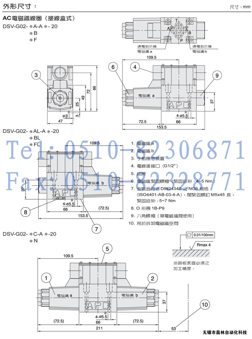 DSV-GO2-5N,DSV-GO2-6N,DSV-GO2-7N,DSV-GO2-8N,DSV-GO2-11N,DSV-GO2-22N,濕式電磁鐵操作換向閥