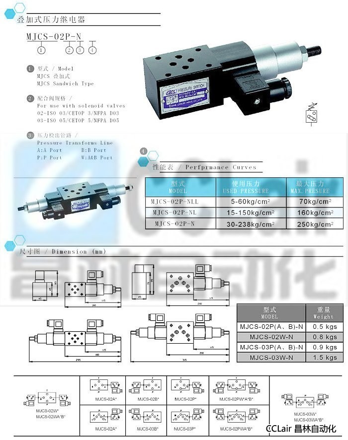 MJCS-02P-N,MJCS-02P-NL,MJCS-02P-NLL,MJCS-03P-N,MJCS-02A-N,MJCS-02B-N,MJCS-03A-N,MJCS-03B-N,疊加式壓力繼電器