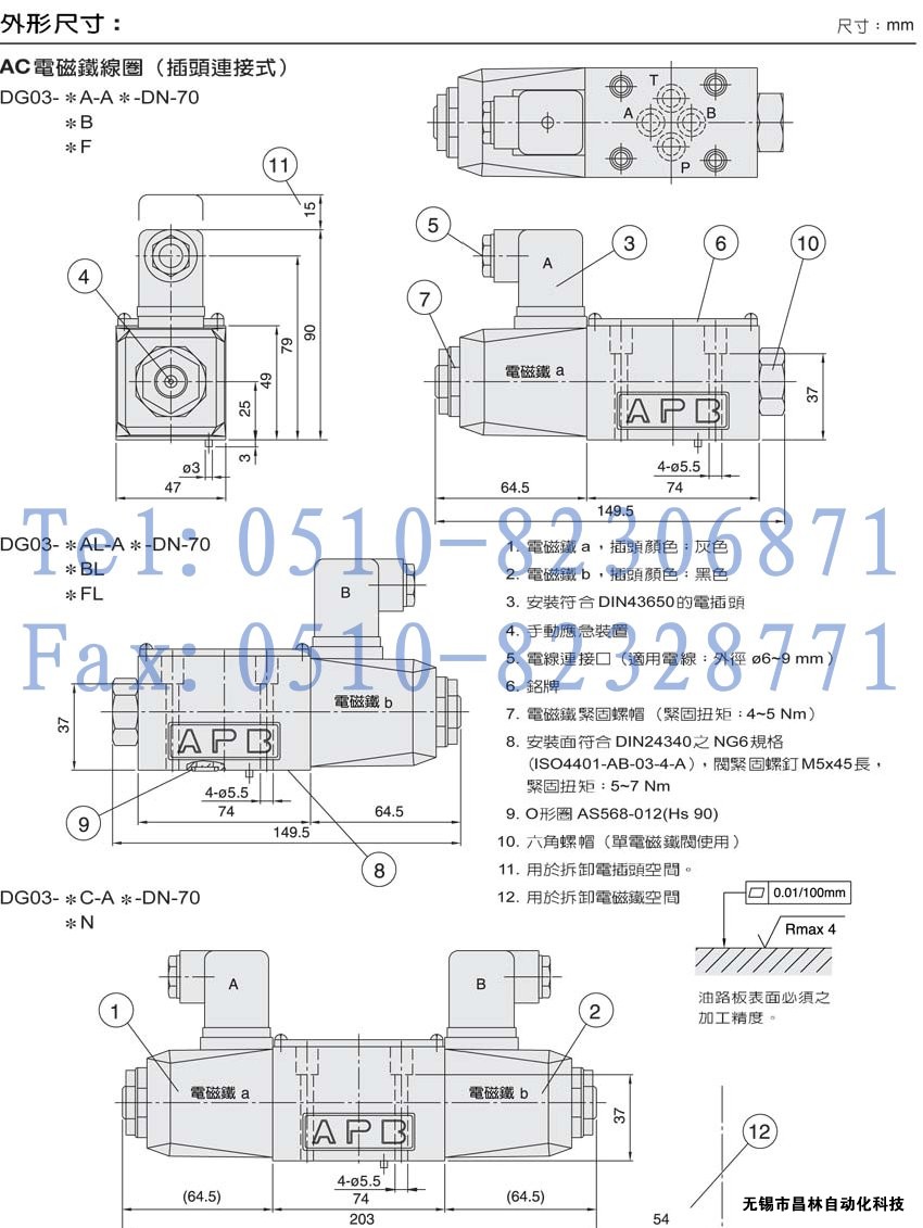 DG03-31N,DG03-33N,DG03-3AL,DG03-8B,濕式電磁鐵操作換向閥