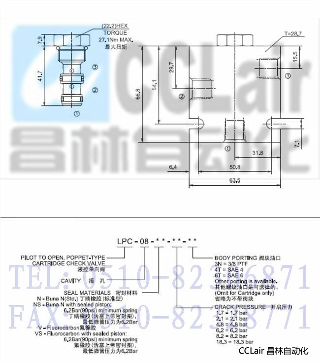 LPC-08-N-1.7,LPC-08-N-2.1,LPC-08-N-4.8,LPC-08-N-6.2,液控單向閥,