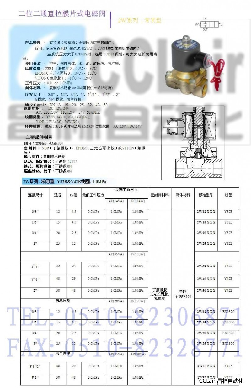 2W40,2W50,2W40F,2W50F,二位二通直拉膜片式電磁閥