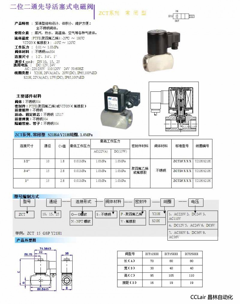 ZCT15,ZCT20,ZCT25,二位二通先導(dǎo)活塞式電磁閥