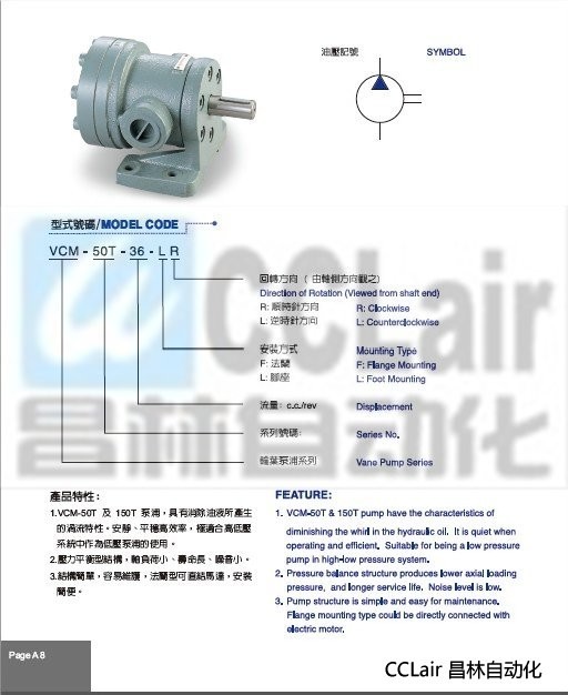 VCM-50T-12-LR,VCM-50T-17-LR,VCM-50T-23-LR,VCM-50T-26-LR,定量葉片泵 |