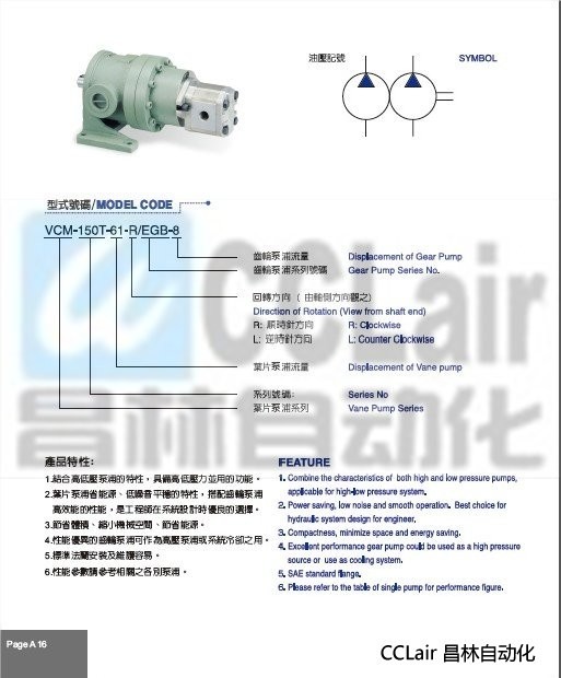 VCM-150T-75-R/EGB-8,VCM-150T-75-L/EGB-8,定量葉片泵