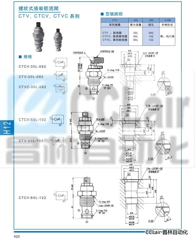 CTCV-50L-102,CTV-50L-102,CTCV-80L-122,螺紋式插裝節(jié)流閥