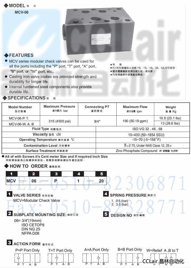 MCV-06-P,MCV-06-T,MCV-06-C,MCV-06-D,積層型止逆閥,