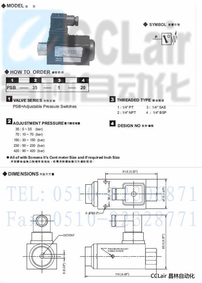 PSB-35-2-20,PSB-150-2-20,PSB-70-2-20,PSB-230-2-20,PSB-420-2-20,調(diào)整式壓力開關(guān) |