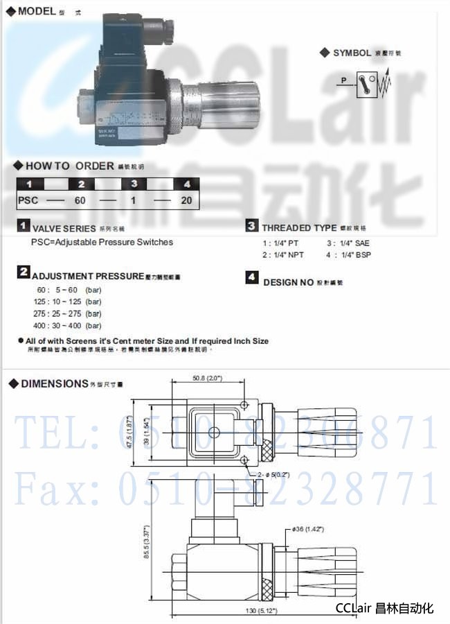 PSC-60-1-20,PSC-125-1-20,PSC-275-1-20,PSC-400-1-20,調(diào)整式壓力開(kāi)關(guān)