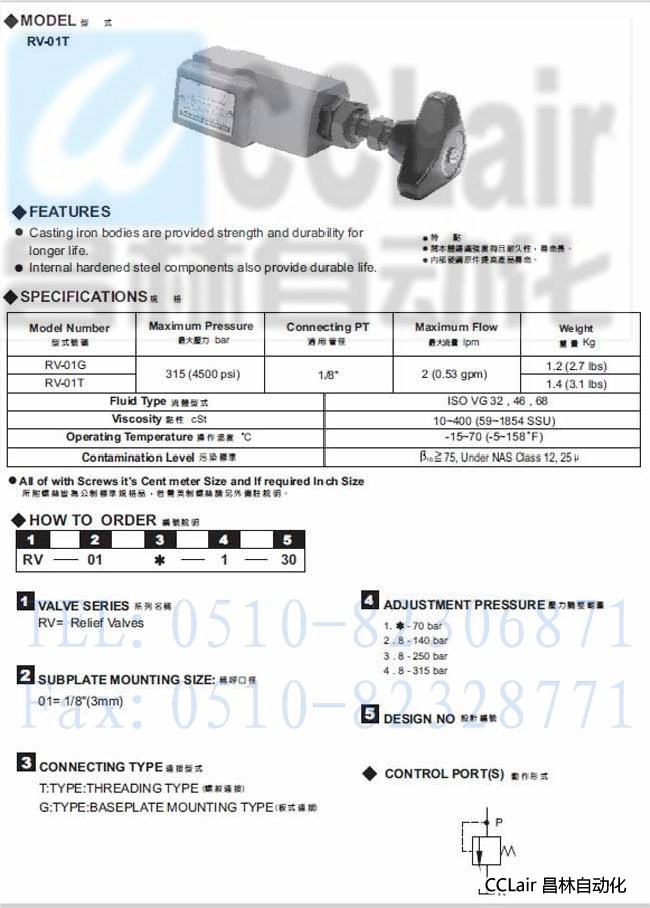 RV-01T-1-30,RV-01T-2-30,RV-01T-3-30,RV-01T-4-30,溢流閥,
