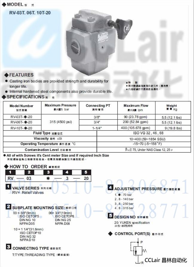 RV-03T-1-20,RV-03T-2-20,RV-03T-3-20,RV-03T-4-20,溢流閥,