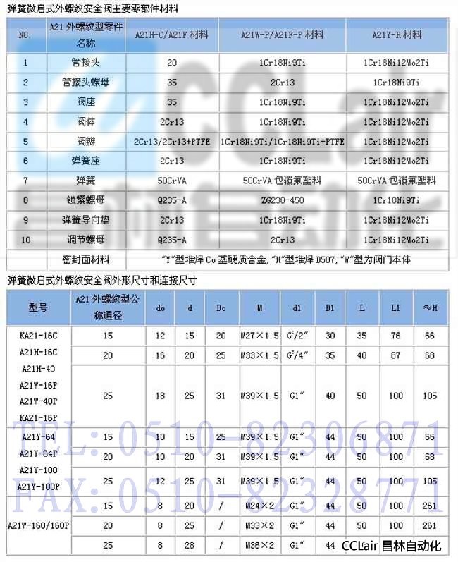 KA21-16P,A21Y-64,A21Y-64P,A21Y-100,彈簧微啟式外螺紋安全閥