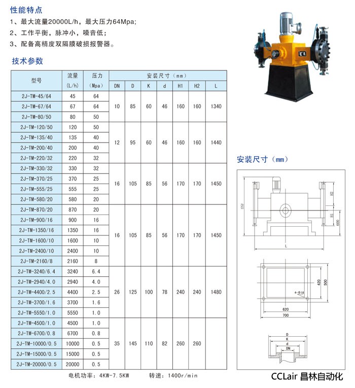 2J-TM-900/16,2J-TM-1350/16,2J-TM-1600/10,液壓隔膜計(jì)量泵