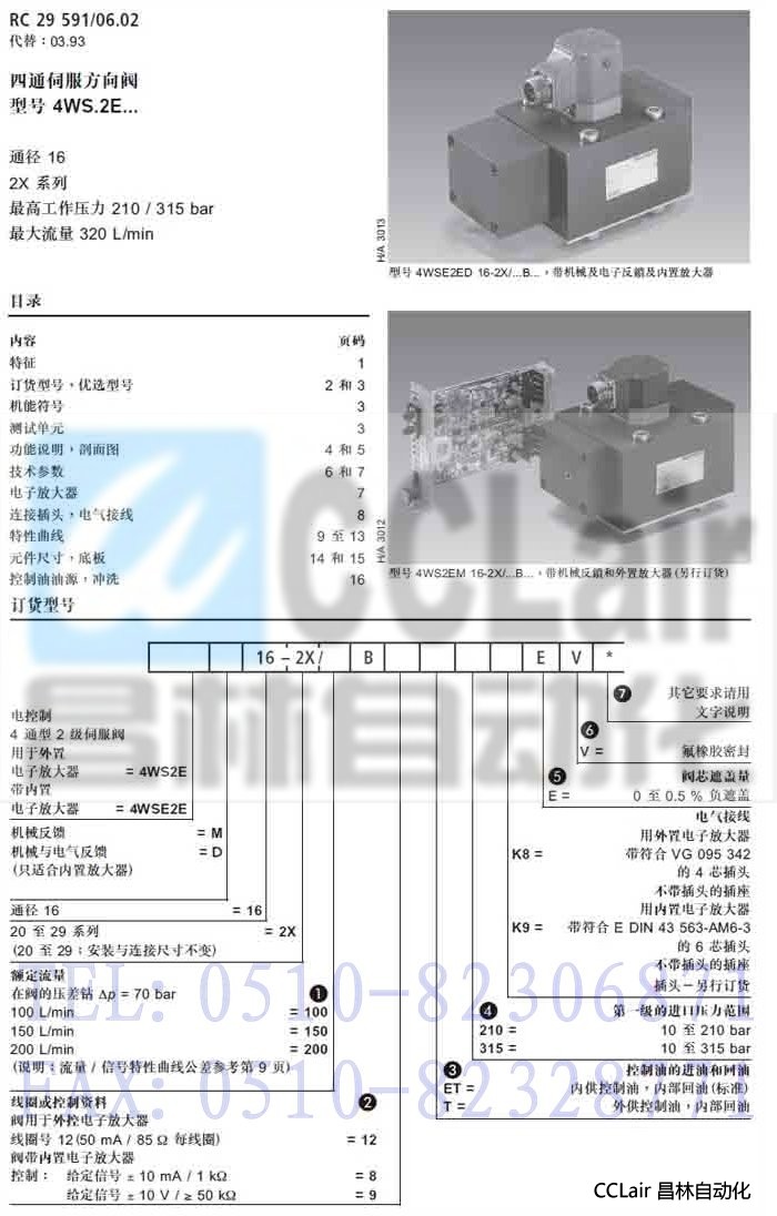 4WSE2EM16-2X/100B9ET315K9EV,4WSE2EM16-2X/150B8ET210K9EV,方向伺服閥,力士樂REXROTH,德國力士樂 |