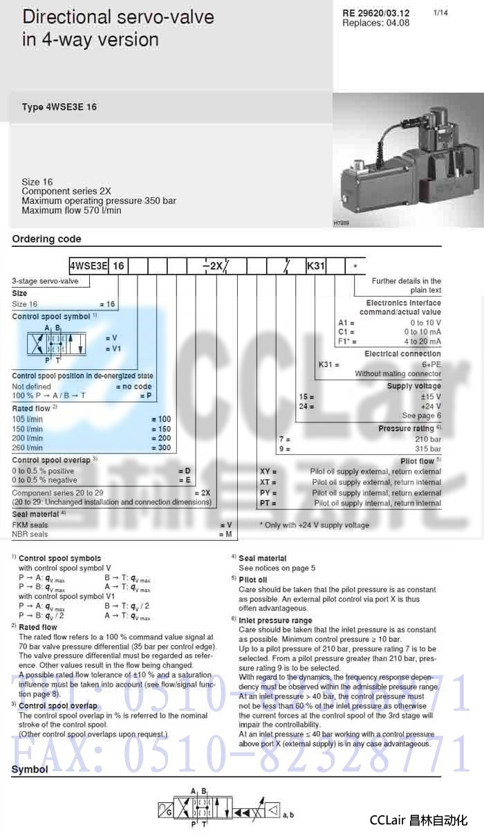 4WSE3E16V200D2X/VPT9/15K31A1,4WSE3E16V200D2X/VPT9/24K31A1, 方向伺服閥,力士樂REXROTH,德國力士樂 |
