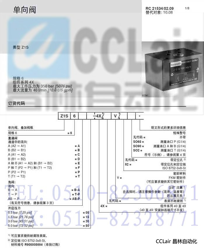 Z1S6P05-4X/V,Z1S6P05-4X/VSO68,Z1S6P05-4X/VSO90,單向閥,力士樂(lè)REXROTH,德國(guó)力士樂(lè)