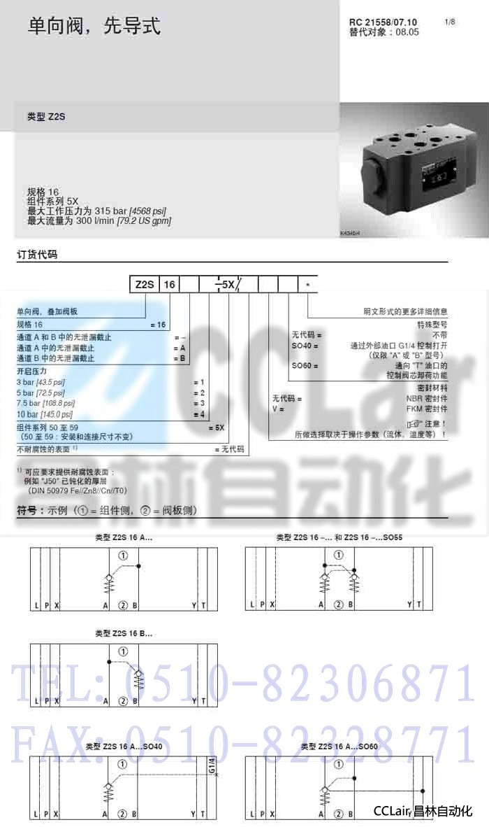 Z2S16B3-5X/V,Z2S16B4-5X/,,單向閥,力士樂REXROTH,德國力士樂