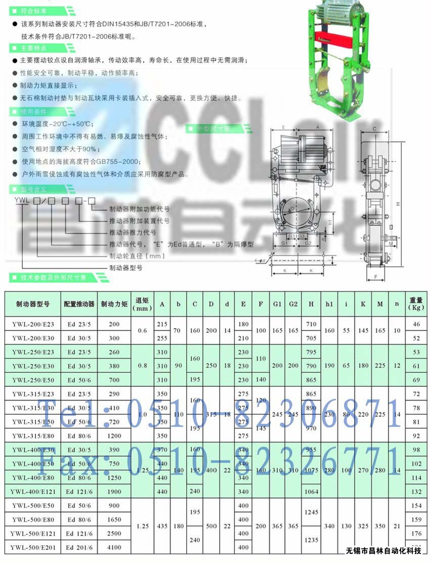 YWL系列液壓制動器