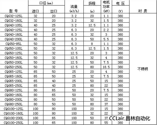 CQG40-200L,CQG50-85L,CQG50-105L,CQG50-125L,CQG50-160L,