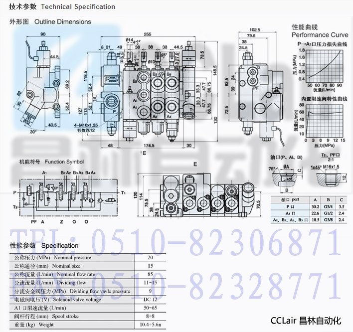 ★ 內(nèi)置單向閥:每聯(lián)換向體都有內(nèi)置單向閥,防止油液倒流