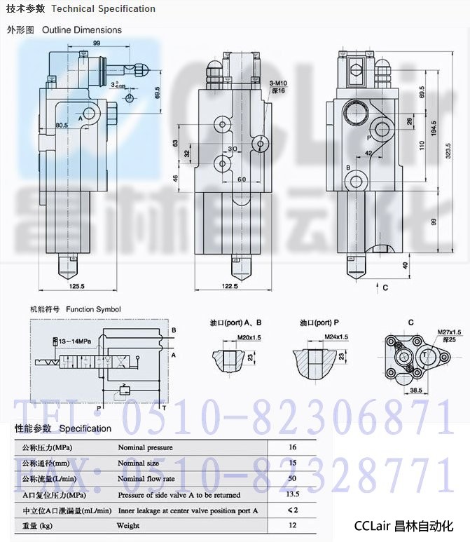 ★ 定載復位:滑閥在A口工作位時能在設(shè)定的壓力下自動復位