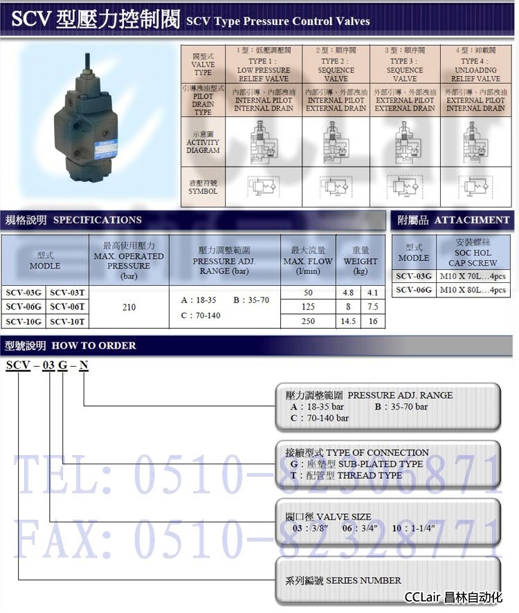 SCV-03G-A,SCV-03G-B,SCV-03G-C,SCV-03T-A,SCV-03T-B,SCV-03T-C,壓力控制閥