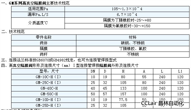 GM-10C-H(I),GM-25C-H(I),GN-40C-H 40,高真空隔膜閥