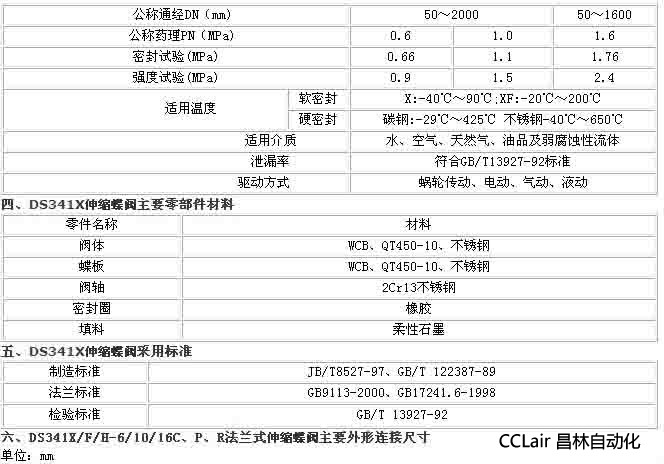 三、DS341X伸縮蝶閥主要技術(shù)參數(shù)