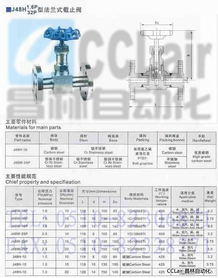 J48W-16,J48W-25,J48W-16P,J48W-25P,J48W-40,J48W-40P,J48H-10,法蘭式針型閥