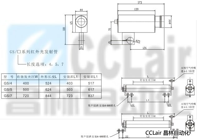 紅外光源GS系列管發(fā)出高頻光脈沖,射出一束平行光,由紅外光敏接收管接收,經(jīng)過信號放大器,轉變成電脈沖信號。當光路上有帶材遮擋時,光信號的強弱便發(fā)生變化,這個變化經(jīng)同步介調和放大后再轉變成標準模擬信號輸出。