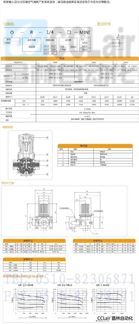 OR-1/8-MINI,OR-1/4-MINI,OR-3/8-MINI,OR-3/4-MAXI,OR-1-MAXI,減壓閥