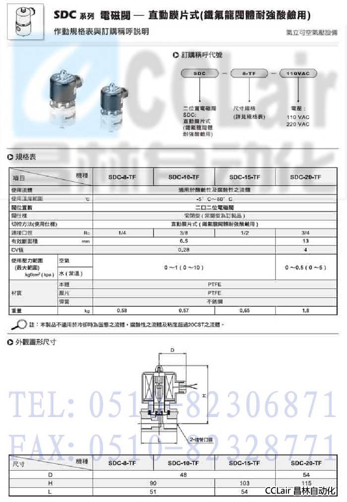SDC-8-TF,SDC-10-TF,SDC-15-TF,SDC-20-TF,直動膜片式電磁閥