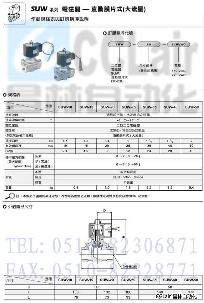 SUW-10,SUW-15,SUW-20,SUW-25,SUW-35,SUW-40,SUW-50,直動膜片式電磁閥
