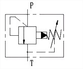 當(dāng)P口壓力未達(dá)到彈簧設(shè)定壓力的90%時,P到T不通超過90%并繼續(xù)升高時,P到T開始溢流,直到彈簧的最高設(shè)定壓力。