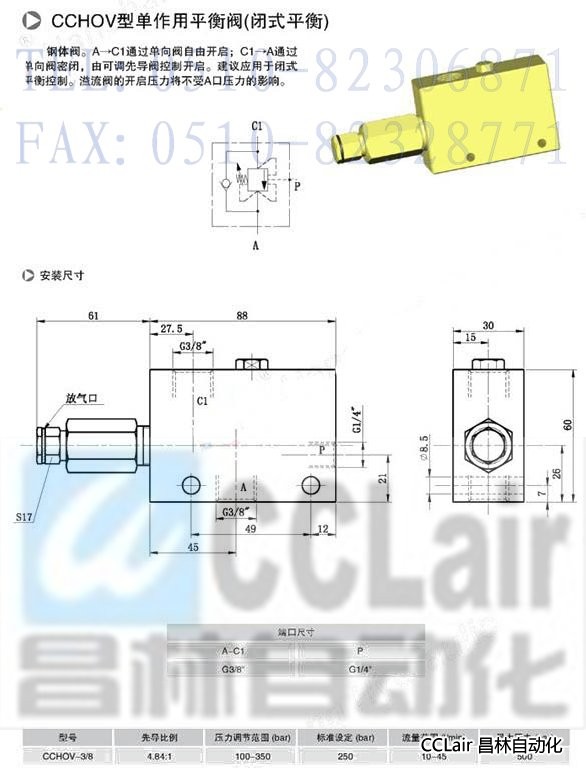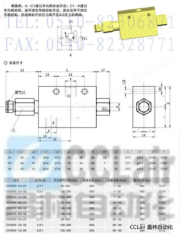 CCHOV-3/8,CCHOV-1/2,單作用平衡閥(閉式平衡)