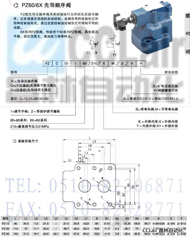 PZ10, PZ20, PZ30, 先導(dǎo)式順序閥