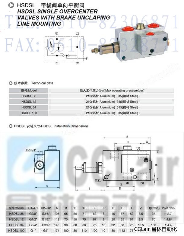 HSDSL 38,HSDSL 12,HSDSL 34,HSDSL 100,帶梭閥單向平衡閥