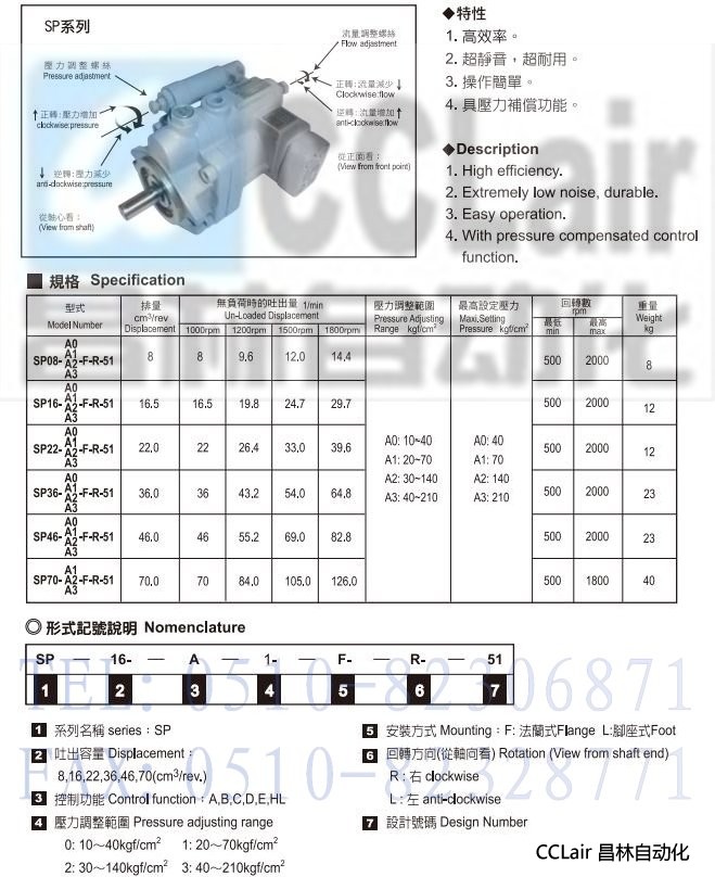 SP08-D0-F-R-51,SP08-D1-F-R-51,SP08-D2-F-R-51,SP08-D3-F-R-51,可變排量柱塞泵