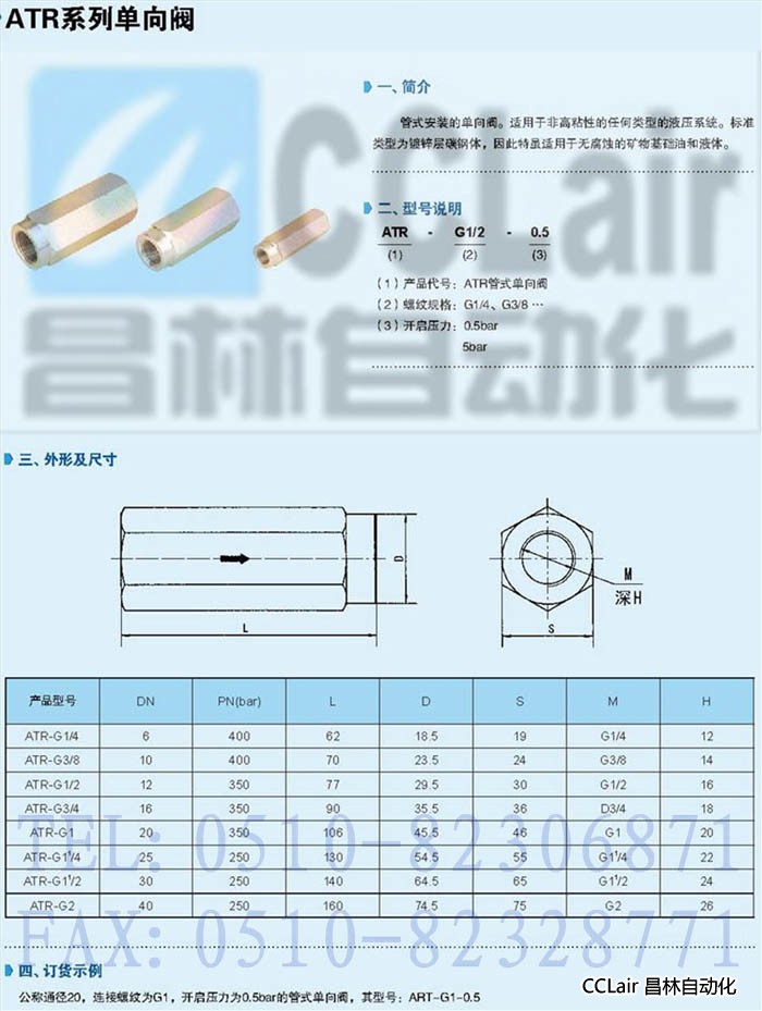 ATR-G1/4,ATR-G3/8,ATR-G1/2,ATR-G3/4,ATR-G1,ATR-G2,單向閥