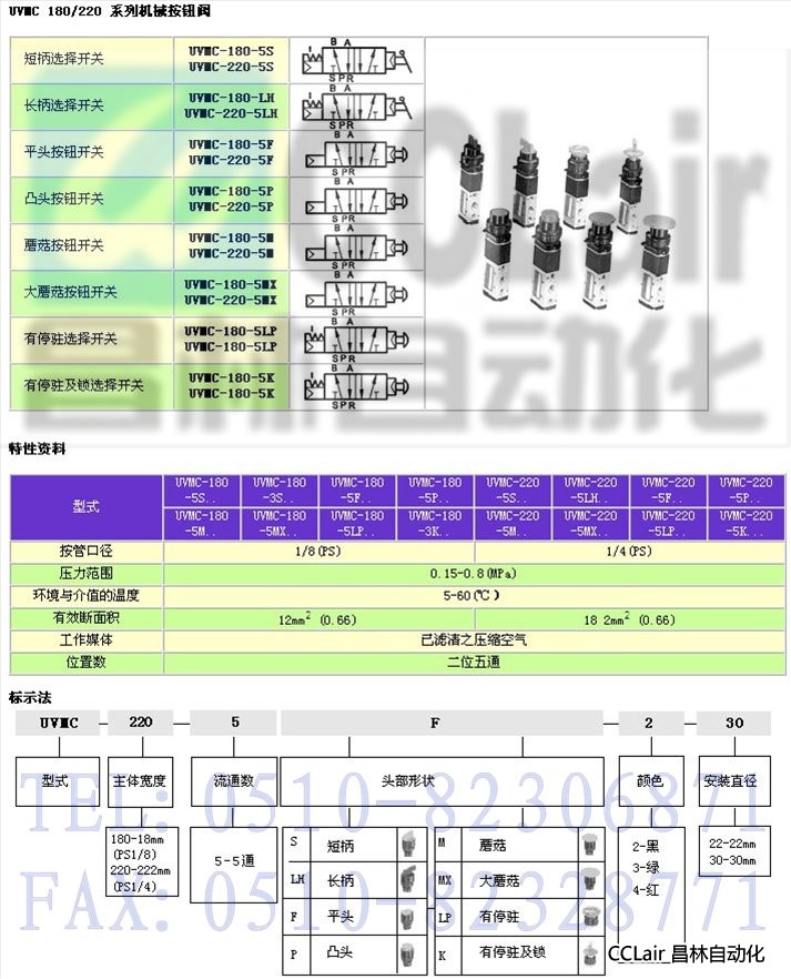 UVMC-180-5S,UVMC-180-3S,UVMC-180-5F,UVMC-180-5P,UVMC-220-5S,機(jī)械按鈕閥