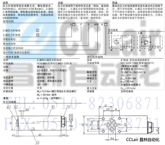 UZFSA06,UDFSA06,疊加式壓力補(bǔ)償閥