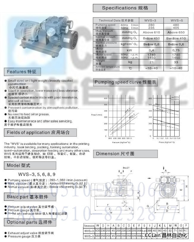 WVS-3,WVS-5,干式旋片真空泵