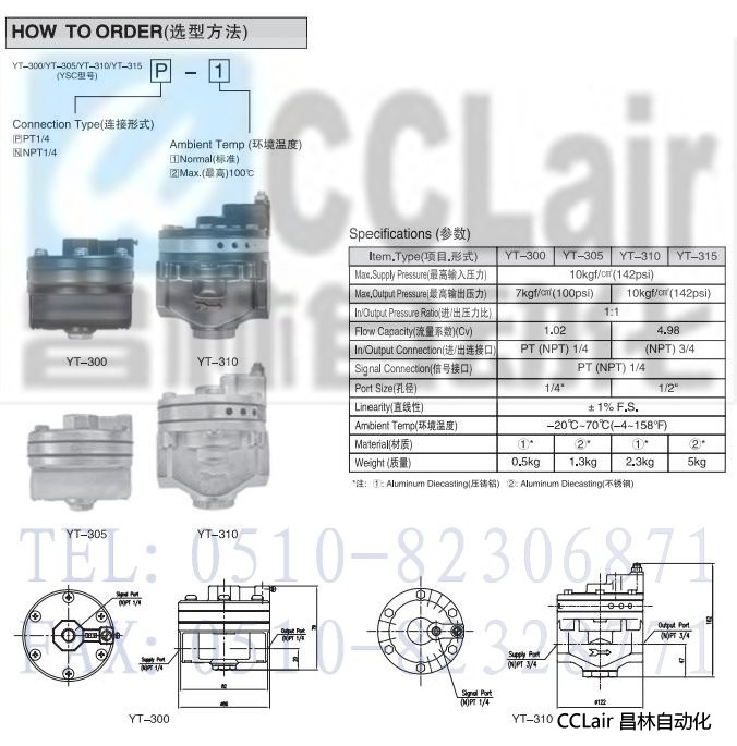 YT-300,YT-305,YT-310,YT-315,氣動放大器