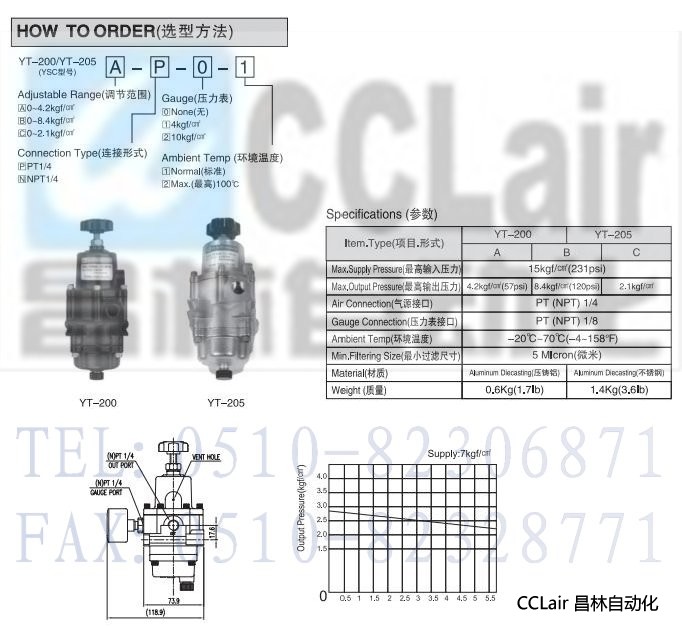 YT-200,YT-205,空氣過濾減壓閥