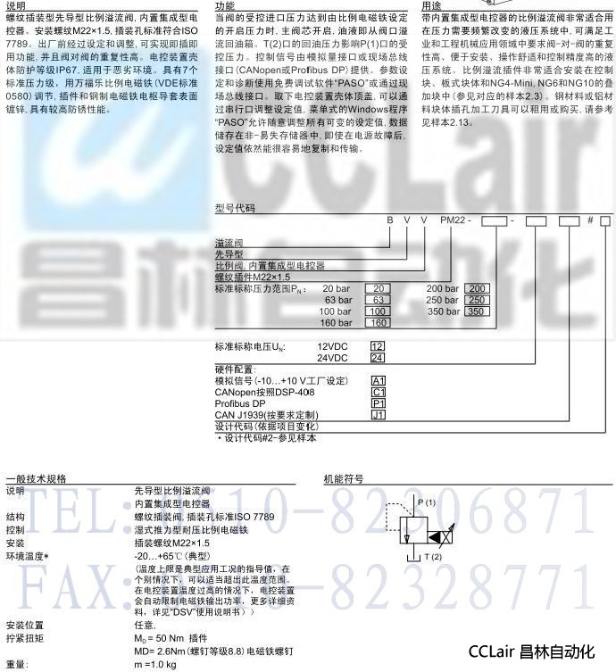 BVVPM22,先導式比例壓力溢流插裝閥(內(nèi)置集成型電控器)
