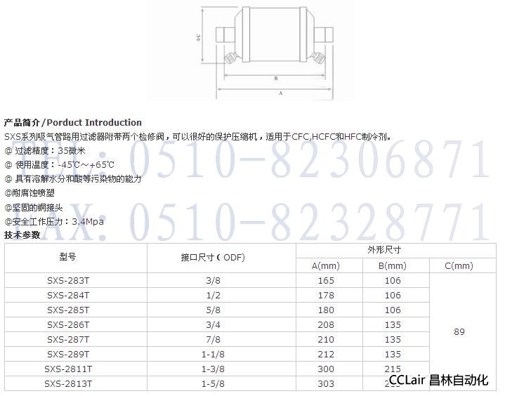 SXS-283T,SXS-284T,SXS-285T,SXS-286T,SXS-287T,吸氣管路過濾器