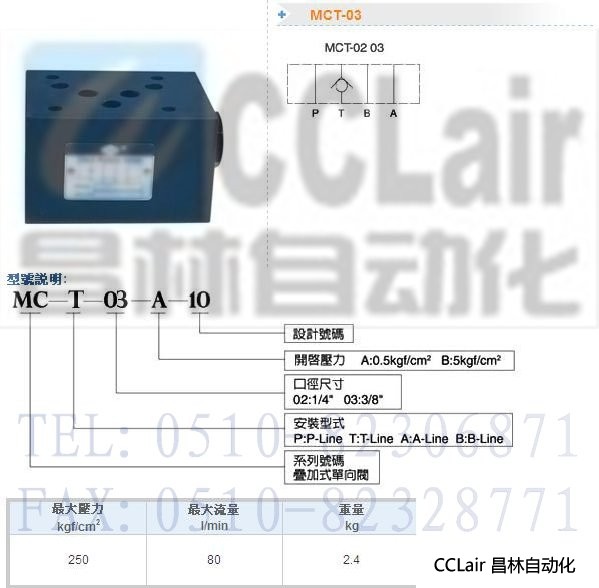 MCT-03-A-10,MCT-03-B-10,疊加式單向閥