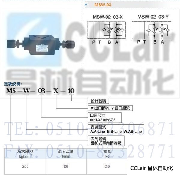 MSW-03-X-10,MSW-03-Y-10,疊加式單向節(jié)流閥