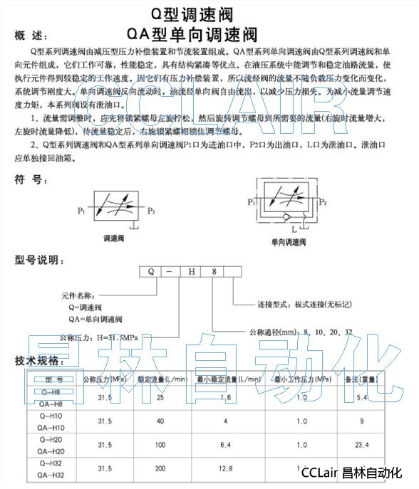 QA-H8,QA-H10,QA-H20,QA-H32,單向調(diào)速閥