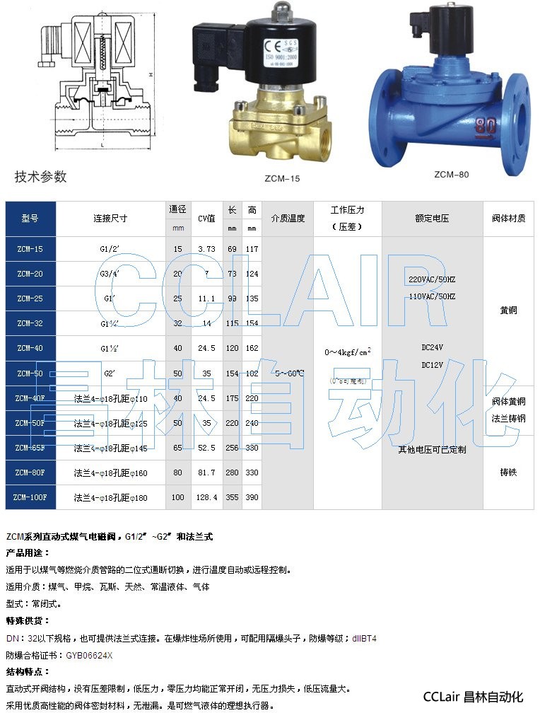 ZCM-15,ZCM-20,ZCM-25,ZCM-32,ZCM-40,直動式煤氣電磁閥,G1/2〞~G2〞和法蘭式