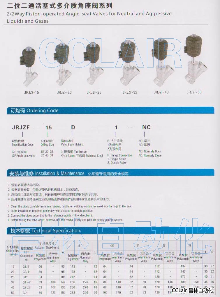 JRJZF-15,JRJZF-20,JRJZF-25,二位二通活塞式多介質(zhì)角座閥